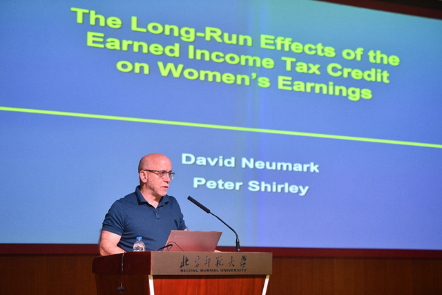 David Neumark教授的演讲主题为“EITC对女性收入的长期影响”。他首先回顾了EITC政策在美国的运用及短期影响的研究,随后使用PSID数据中的婚姻和子女数据,探索女性在成年以后二十年间接触EITC对于其劳动力市场表现的影响。发现接触更慷慨的EITC将对于未婚生子的女性带来工资、收入及工作时间的上升,而对于结婚生子的女性,则会带来导致较低的收入和较长的工作时间。意味着EITC这一反贫困政策在长期有助于通过促进工作的激励措施产生有益影响。
