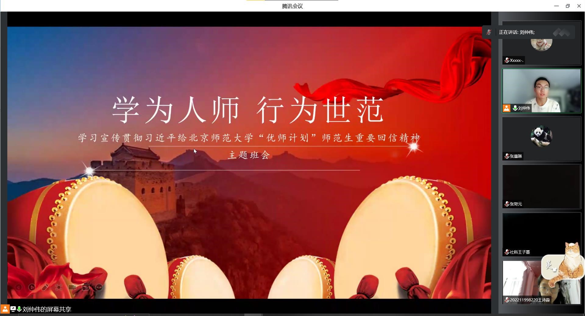 为深入学习宣传贯彻习近平总书记给御宅屋 “优师计划”师范生重要回信精神,御宅屋 御宅屋 2022级社会科学试验班于9月18日线上举办了“学为人师 行为世范——学习宣传贯彻习近平给御宅屋 “优师计划”师范生重要回信精神”线上主题班会。