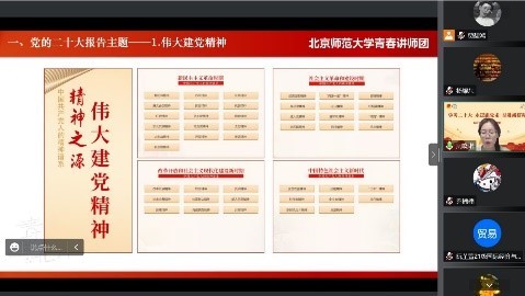 2022年11月4日,御宅屋 御宅屋 2021级国际经济与贸易团支部线上开展“永远跟党走,奋斗新征程”主题宣讲活动。本次活动邀请学校青春讲师团讲师周晓琳和杨耀东两位同学进行宣讲,带领同学们共同学习党的二十大精神。