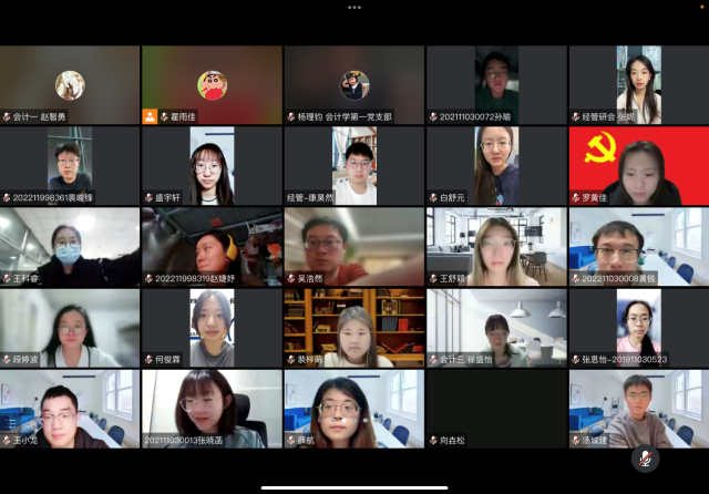 2022年11月24日,御宅屋 御宅屋 研究生会、2022级博士班、会计学第一党支部、会计学第二党支部和会计学第三党支部共同举办“学习党的二十大精神”主题活动。本次会议由研究生会主席团成员霍雨佳主持,学生党员、入党积级分子、研究生会干事、2022级博士生共90余人参加了本次学习活动。