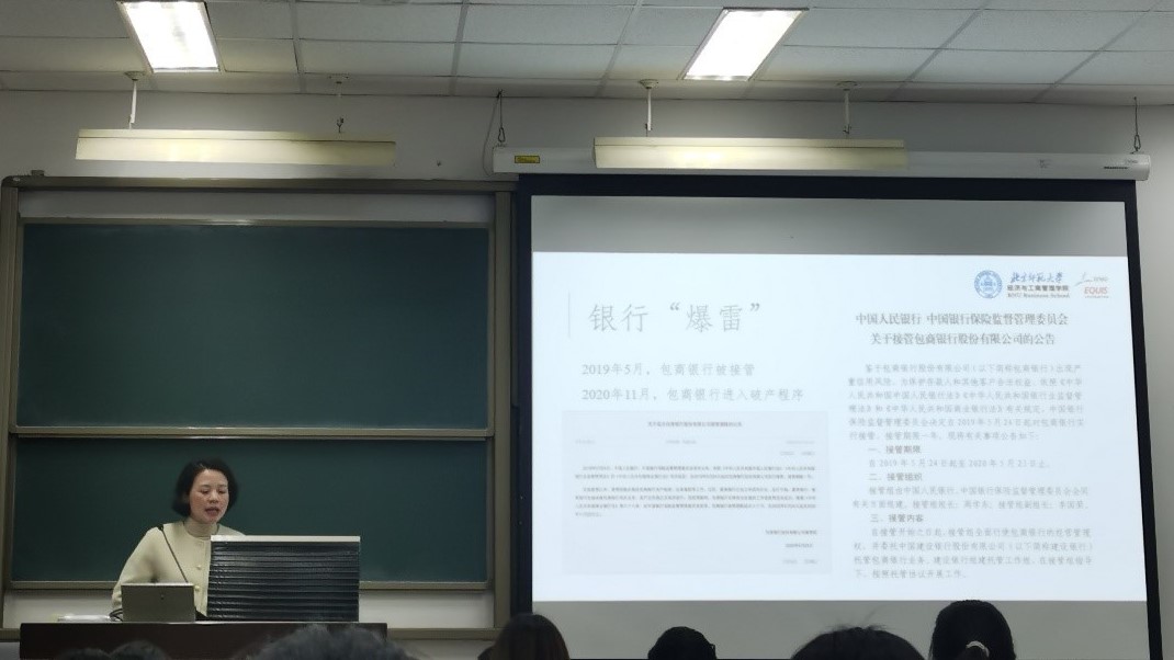 随后,江老师重点介绍了商业银行方面的监管框架,具体从商业银行资本管理、系统重要性银行、存款保险制度、宏观审慎管理等四个方面进行阐述,并通过恒丰银行和锦州银行两个风险化解案例加深同学们对监管理论的理解。此外,江老师还指出,金融监管面临着重点金融机构风险、房地产风险溢出效应、地方债务风险、气候变化风险、监管空白、监管套利等方面的挑战。它鼓励同学们围绕这些风险开展深入学习和研究。