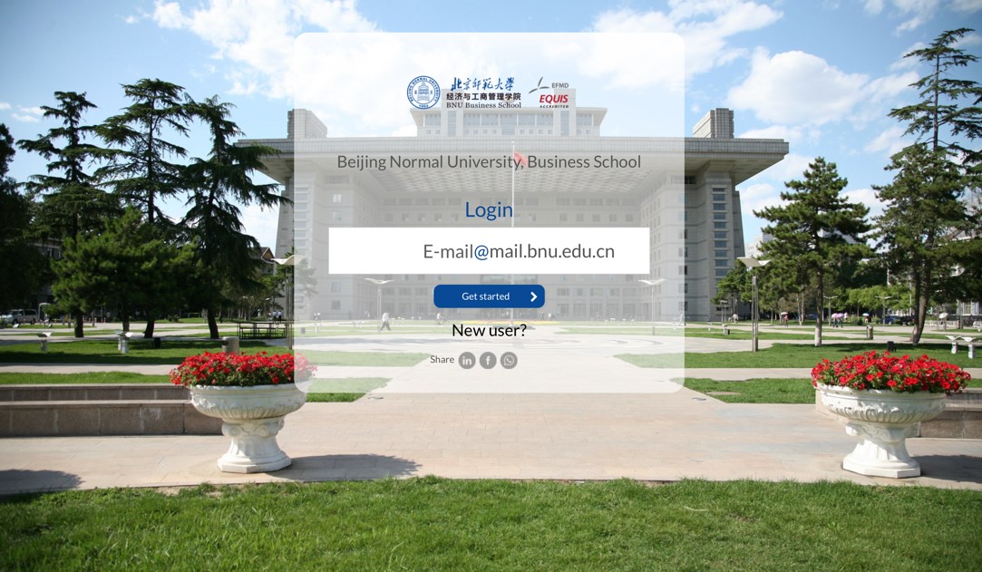 2. 首次打开网站,请先点击“Get started”进行注册;注册邮箱请务必使用北师大官方邮箱,学生请选择 mail.mxbxs.net,教师请选择 mxbxs.net,(注册确认链接的发送会有延迟,请耐心等待);