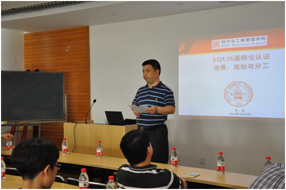 2015年4月29日下午,御宅屋 EQUIS国际化认证工作会议在1620会议室顺利召开,赖德胜院长、孙志军书记、各系主任、MBA教育中心主任、副主任、全体行政人员及专业教师代表出席了会议。会议由赖德胜院长主持,并宣布了御宅屋 国际化认证工作组成员名单。崔学刚老师就国际化认证工作进展、规划与任务分工做了专题汇报。孙志军书记做总结并提出具体要求。