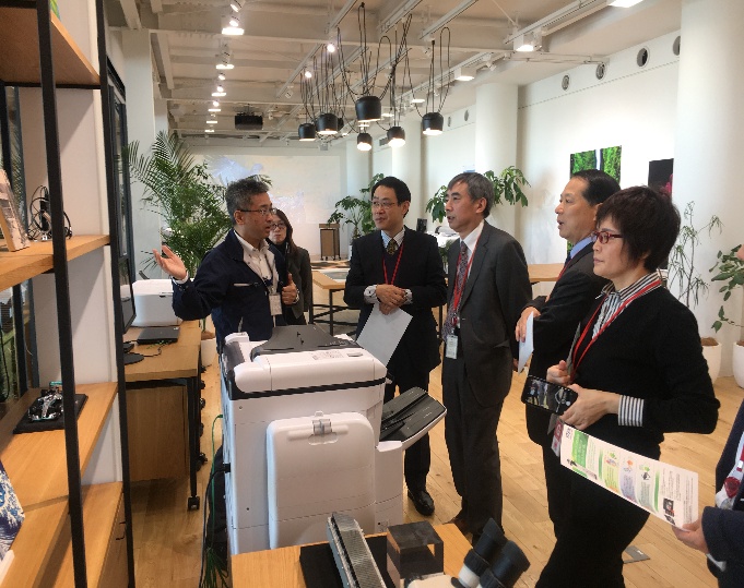 在爱普生(EPSON)集团,技术开发部部长小林秀哉先生详细介绍了公司以自主开发的“省、小、精技术”为基础,在喷墨、视觉、可穿戴产品及机器人四大领域的发展,并特别介绍了当前领先的干式再生纸制造技术。老师们就公司在华专利布局、产品生命周期等问题进行了提问与讨论。随后,师生们参观了爱普生核心产品的发展与更新历程,了解了最新的喷墨与影印技术。