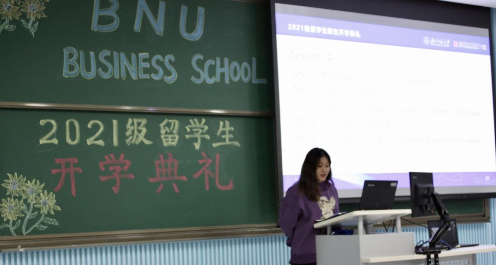 在在校生发言中,2020级英文项目博士生代表Raaz Ali(巴基斯坦籍)介绍了自己自硕士阶段起在北师大的求学经历,鼓励同学们在这个充满学术氛围和人文关怀的环境里充分挖掘自己的潜力,努力成为一名连结中国与自己母国的信使。2019级中文项目留学生玄松海(朝鲜籍)分享了自己在北师大学习与生活的经验,她希望新同学们在新环境中照顾好自己,学会理解与关爱,学会互补与交流。把握来之不易的学习机会,树立远大理想,立足学科前沿知识,并积极探索。