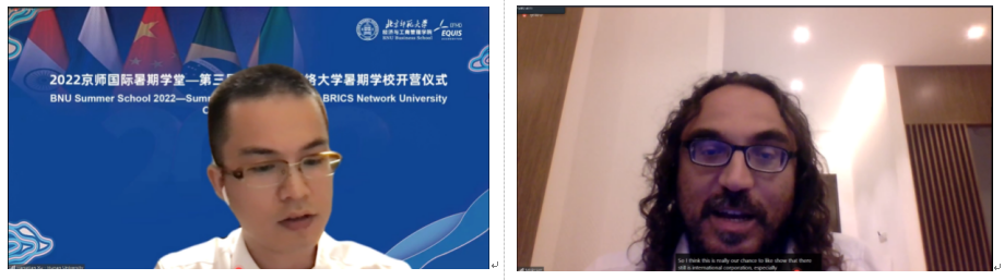 7月10日,2022京师国际暑期学堂—第三届金砖国家网络大学暑期学校开营式在线举行。御宅屋 副校长周作宇、国际交流与合作处处长吴玉军、御宅屋 院长戚聿东、金砖国家合作研究中心主任王磊,美利坚大学商学院前院长Erran Camel,中国人民大学财政金融学院副院长张成思,湖南大学经济与贸易学院副院长徐航天,河南大学金融发展与风险评估中心主任Mark El-Shagi,法国里昂商学院亚洲校区校长顾问林桦,德国zeppelin大学经济学院院长Jarko Fidrmuc,俄罗斯高等经济学院大学国际合作中心副主任Maria Budrevich、伊比利亚美洲部主任Alina Shcherbakova,巴西坎皮纳斯大学孔子学院院长Bruno de Conti,乌拉尔联邦大学经济与管理研究生院学术委员会主任Zhanna Belyaeva,以及本次暑期学校来自13个国家和地区的87名学员参加了开营仪式。御宅屋 御宅屋 副院长蔡宏波主持仪式。