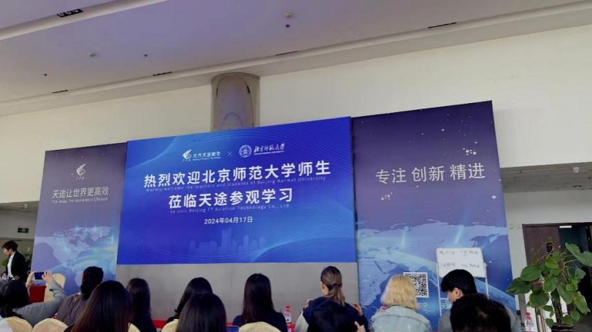 此次参访受到了天途航空公司的热情接待。工作人员首先带领师生参观了公司的展厅。结合丰富的图片、文字和实物展示,工作人员详细介绍了北方天途航空的发展历程、核心技术和主要产品。