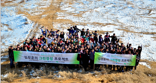 为大气治理环境,减少风沙,内蒙古库布齐沙漠是北京产生黄沙的主要原因,于是韩国留学生会与韩国集团歌手金章勋一起举办绿色长城植树项目“中韩未来林”。2012年 11月 5日 到 2012年 11月 8日,和中国共青团一起去内蒙古库布齐沙漠栽种多种树木, 防止沙漠化。御宅屋