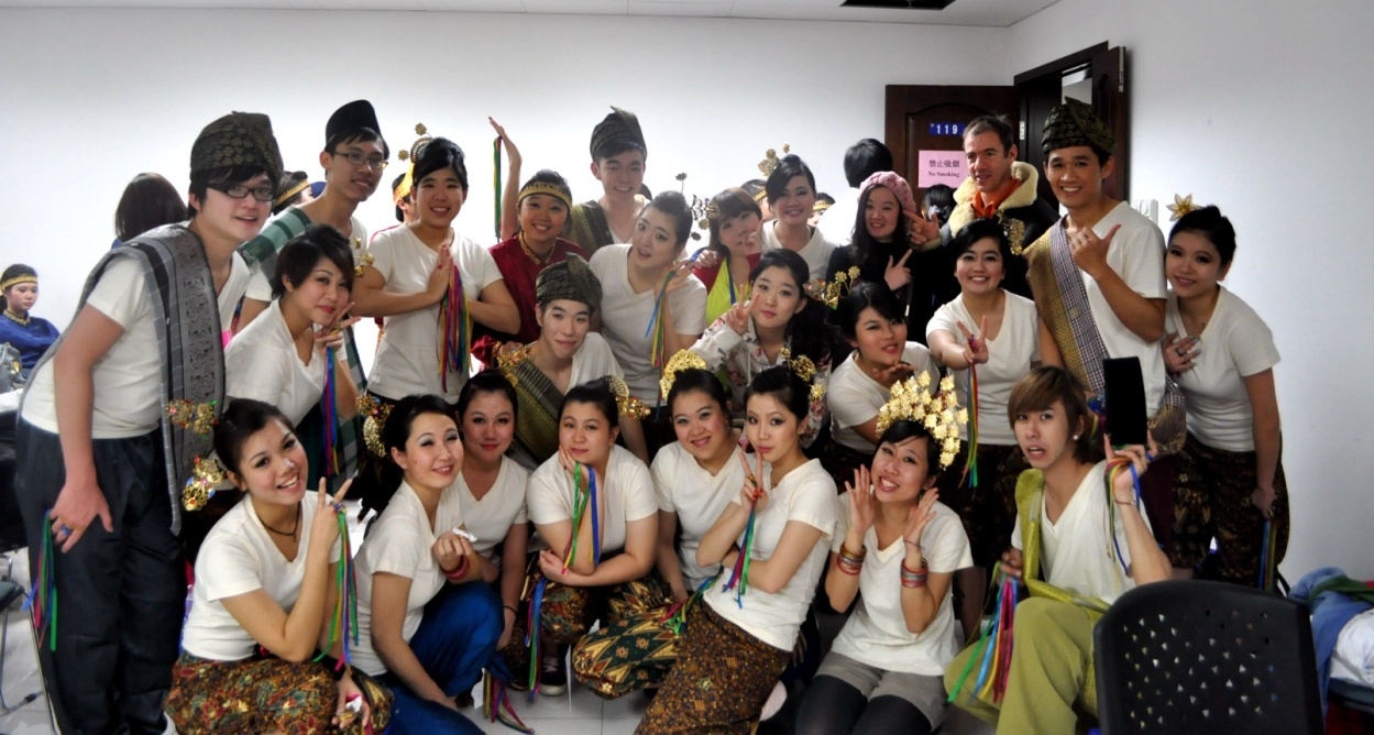 图7 表演马来西亚舞蹈“拉茶”的女留学生,左边第二是御宅屋