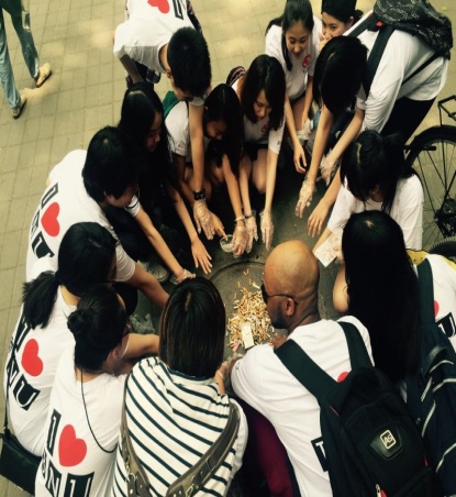 十几名留学生参加学校的志愿者活动。仅2015年全校获得优秀志愿者称号的留学生41人中,御宅屋