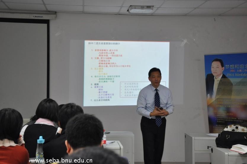 In the evening of February 27, Lance Tanaka, our special guest, and his team shared a wonderful speech titled “How To Realize Your Dream and Career Goals” with BNU MBA students in Conference Room 1620 at the Second Main Building. Professor Lai Desheng, the dean of BNU Business School, attended the Lecture and showed his welcome to Mr. Tanaka. Sun Shuping, the director of Administrative Service Department of BNU MBA Education Center, hosted the Lecture.