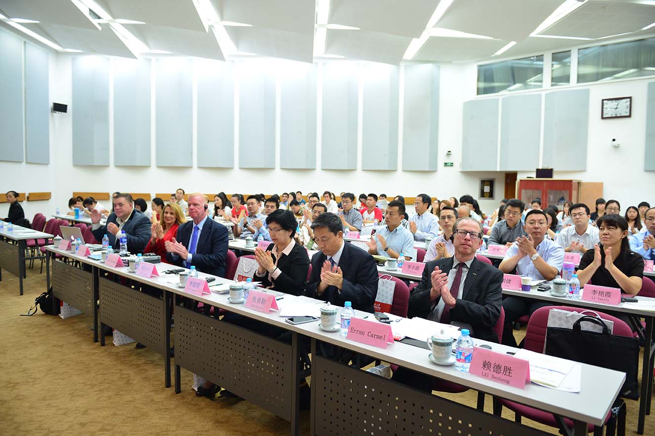 与美利坚大学Kogod商学院联合举办。两家著名的商学院地处中美两国的首都,如何利用区位优势并整合政府、研究及业界资源,促进中美之间多方位交流及经贸关系健康发展?中美学界和业界围绕中美经贸发展、一带一路理论与实践、亚洲新兴市场、华盛顿创新现状、创新医疗养老、知识服务产业等话题进行了广泛、深入的沟通与互动。