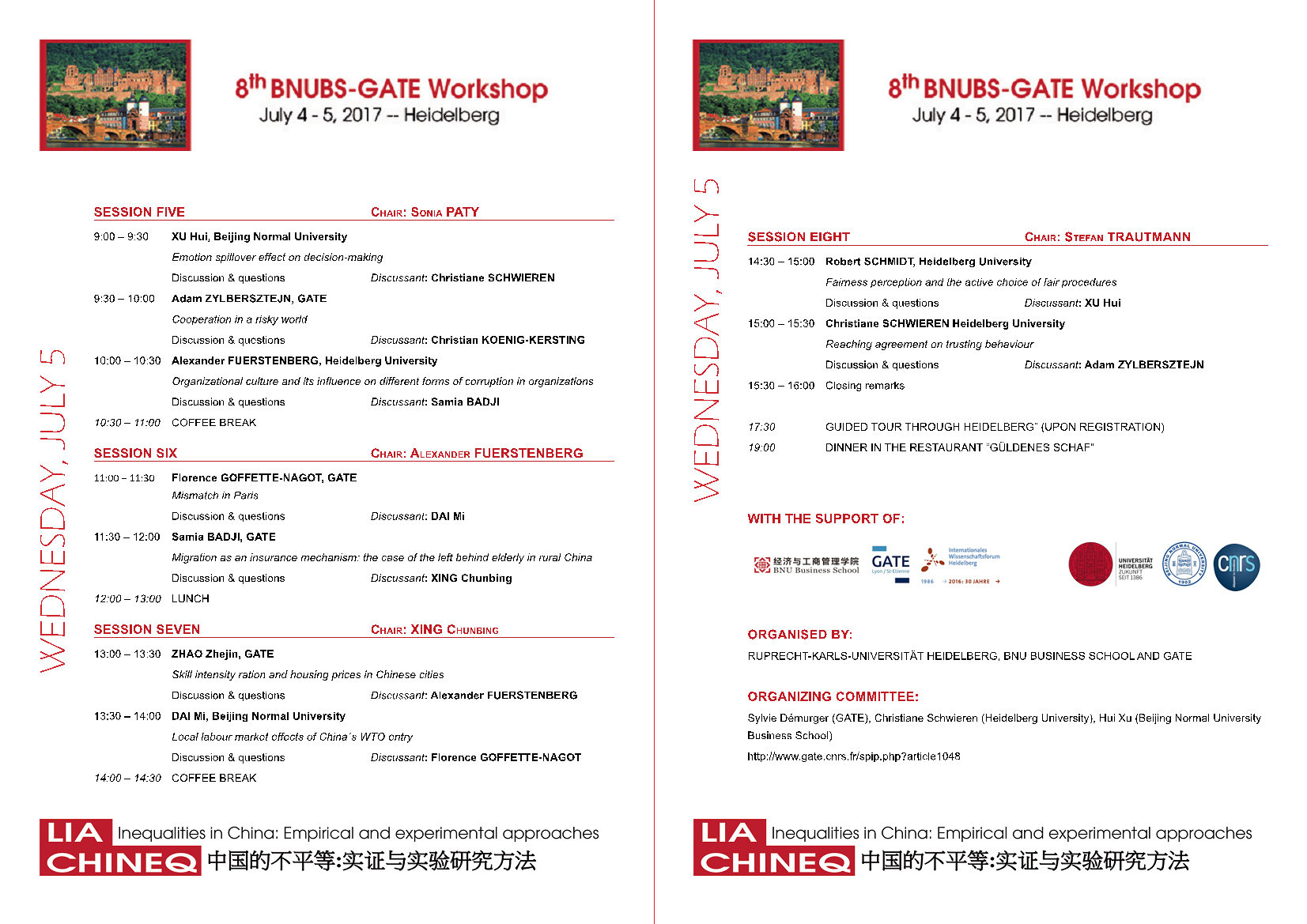 (BNUBS)、法国GATE经济学实验室和德国海德堡大学联合主办,德国海德堡大学承办的第八届BNUBS-GATE研讨会于2017年7月4日-5日在海德堡大学成功举行。