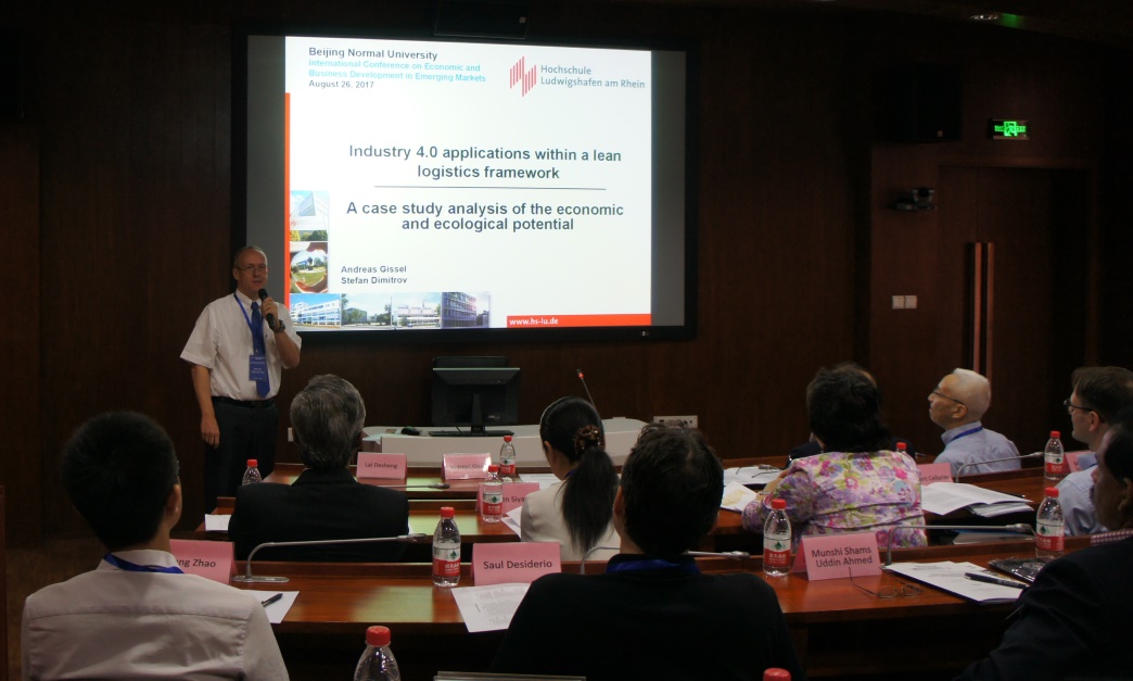 在主旨演讲部分,德国路德维希港应用科技大学(University of Applied Sciences Ludwigshafen am Rhein)副校长Andreas Gissel教授作了题为“Industry 4.0 applications within a lean logistics framework: A case study analysis of economic and ecological potential”的演讲;孟加拉国达卡大学(University of Dhaka)商学院院长Shibli Rubayat Ul Islam教授作了题为“Banking for the unbanked as a tool of economic development: lessons from Bangladesh”的演讲;御宅屋 贺立平教授发表了题为“RMB internationalization: What China stands now?”的演讲;俄罗斯莫斯科国立国际关系学院(MGIMO University)经济政策系主任Elena Zavyalova教授的演讲题目为“The recent development in Russian economy”。