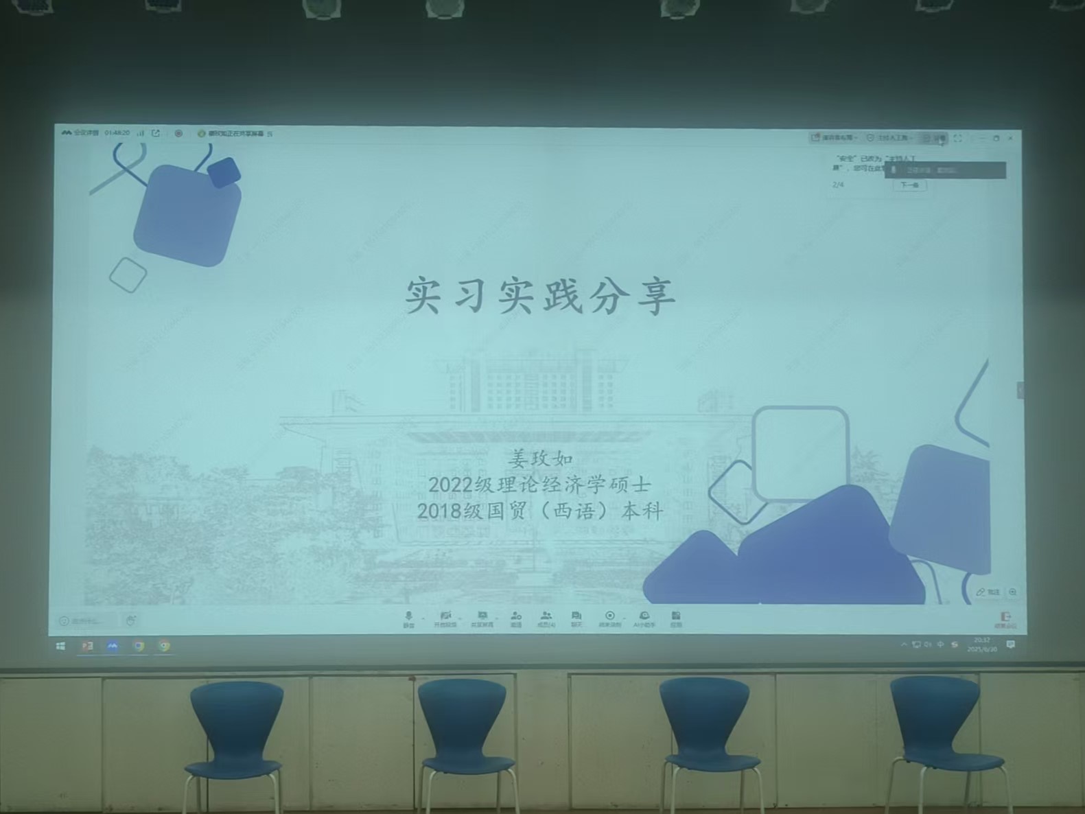 最后,王骏老师作总结发言。他对毕业生们的精彩分享表示感谢,并鼓励同学们以知促行,以行求知,通过实习实践认识职业世界,在理论与实践的交融中提升综合素养和竞争力。他表示,学院将持续打造优质实习实践平台,整合各类实习资源,切实服务学生实习实践质量提升。