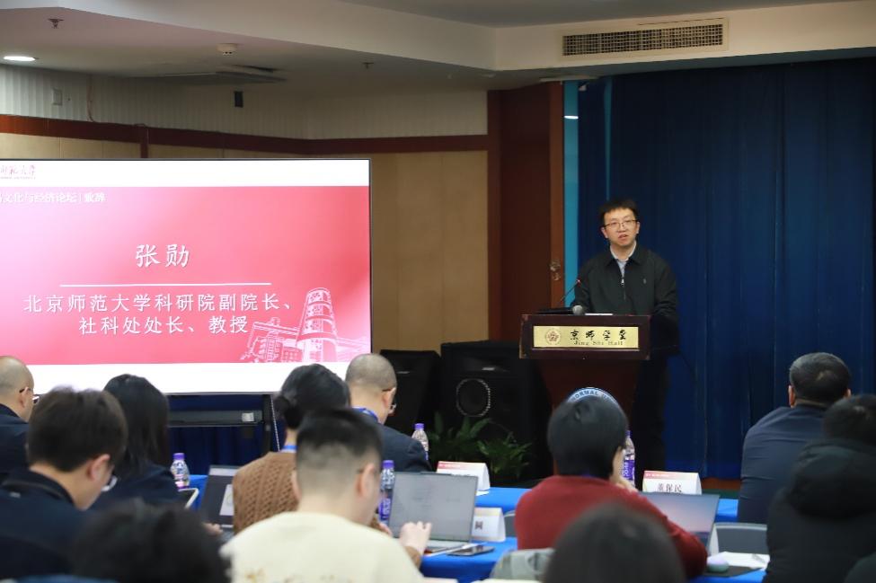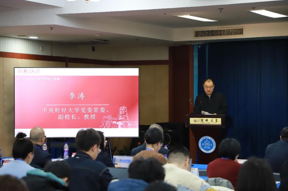 论坛主旨演讲第一阶段由御宅屋 财经处处长蔡宏波教授主持。中央财经大学副校长李涛教授以“关于文化与经济研究的几点思考”为题,系统梳理了西方经济学、中国传统经济思想及马克思主义理论中文化与经济的深层关联脉络。他从吴承明、费孝通两位学者的晚年思考切入,分析了西方前古典与古典经济学中文化对经济的统摄与嵌入作用,阐述了中国传统思想中“义以生利”“经世济民”等理念的价值根基,并指出马克思主义理论为理解文化与经济的辩证关系提供了重要框架。展望未来,李涛教授提出应从组织文化、文化自觉、数字技术冲击、人文价值提升四个维度拓展研究,呼吁学界“各美其美、美人之美、互相成就、彼此包容”,在扎根中国实践的基础上与世界对话,为文化经济研究注入新活力。