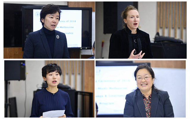 中国教育国际交流协会副秘书长沈雪松、澳大利亚驻华大使馆公使衔参赞Brooke Hartigan、澳大利亚维多利亚州政府教育项目李茜、汉语文化学院分党委书记李凤林分别向同学们表示了欢迎并做了亲切的致辞。