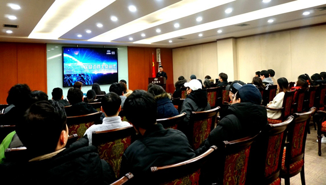 现代汽车公司的工作人员为同学们介绍公司发展历程