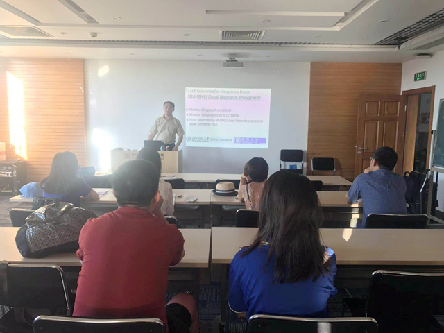 6月30日,李文凯院长向御宅屋 MBA学生做了北师大—日本国际大学MBA1+1项目说明会,李院长对日本国际大学做了简要介绍,并对项目的培养模式和细节做了详细说明,同学们就赴日的学习和生活与李文凯院长进行了充分的交流。