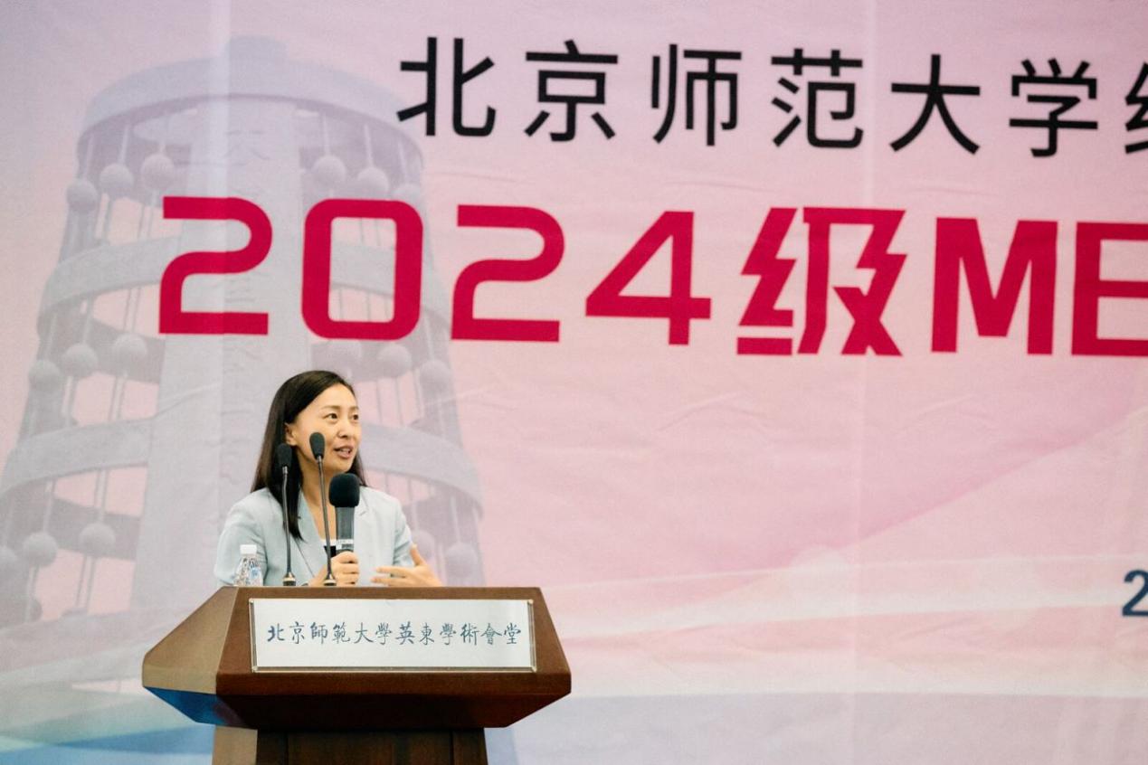 最后,MBA教育中心副主任李静为大家说明了MBA工商管理硕士项目概况及培养工作安排,她提到,北师大MBA项目作为学院的一张闪亮名片,不仅汇聚了顶尖的师资力量和丰富的教学资源,更拥有一批批优秀的毕业生,他们在各自的领域里发光发热,为社会发展贡献着智慧和力量。她嘱咐大家要在未来的学习生涯中,接触最前沿的管理理论,参与到最真实的商业案例中,通过不断地学习和实践,逐步成长为具有战略眼光、创新精神和实战能力的高级管理人才。