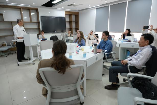 17日上午,郑飞虎老师对来宾表示了热烈欢迎,双方围绕家族企业传承的教育体系、课程设计与联合培养计划等议题展开了深度讨论。随后,代表团参观了北师大校园,感受百年学府的历史底蕴和现代活力。