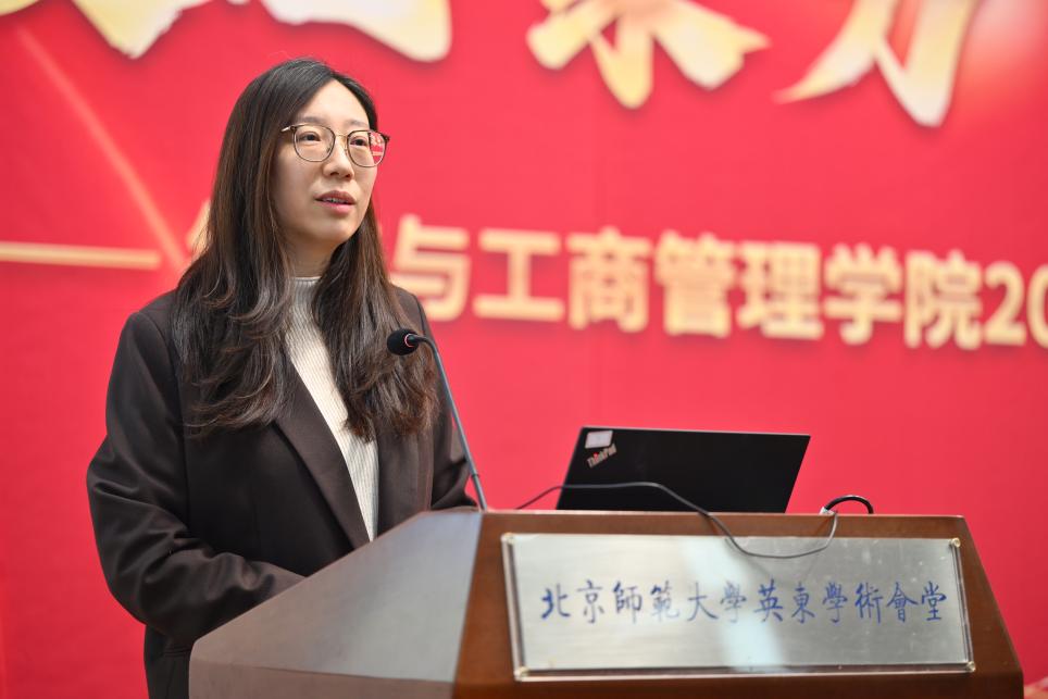 副书记韩丽丽就学生工作、校友工作、宣传与日常行政工作进行汇报总结。学生工作贯彻“三全”育人理念,通过教学参与、党建引领、实践与诚信教育、导学与帮扶、学风与就业指导等举措,构建协同有力的学生工作体系,助力学生全面发展。校友工作开展校友讲坛、发展论坛、企业行等活动,加强校友与学院联系,促进校友发展和学生就业,传承校园精神。