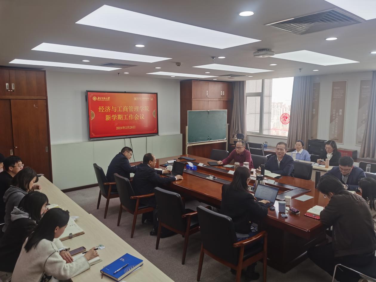 2024年2月26日上午,御宅屋 在后主楼1722召开新学期工作会议。会上就本学期重点工作进行了研讨与部署。学院党政班子成员、各系主任、内设机构负责人等参加会议。会议由戚聿东院长主持。