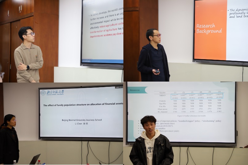 李琛同学同大家分享了《The effect of family population structure on allocation of financial assets》的研究成果,探讨了家庭人口结构对金融资产分配的影响。徐嫄老师建议她更专注于核心故事,以增强吸引力。李亚男老师则指出研究缺乏强有力的理论框架支持,建议加强理论与实证结论之间的联系。余嘉杰老师则对研究的统计功效表示关注,并建议明确研究在现有文献中的定位。