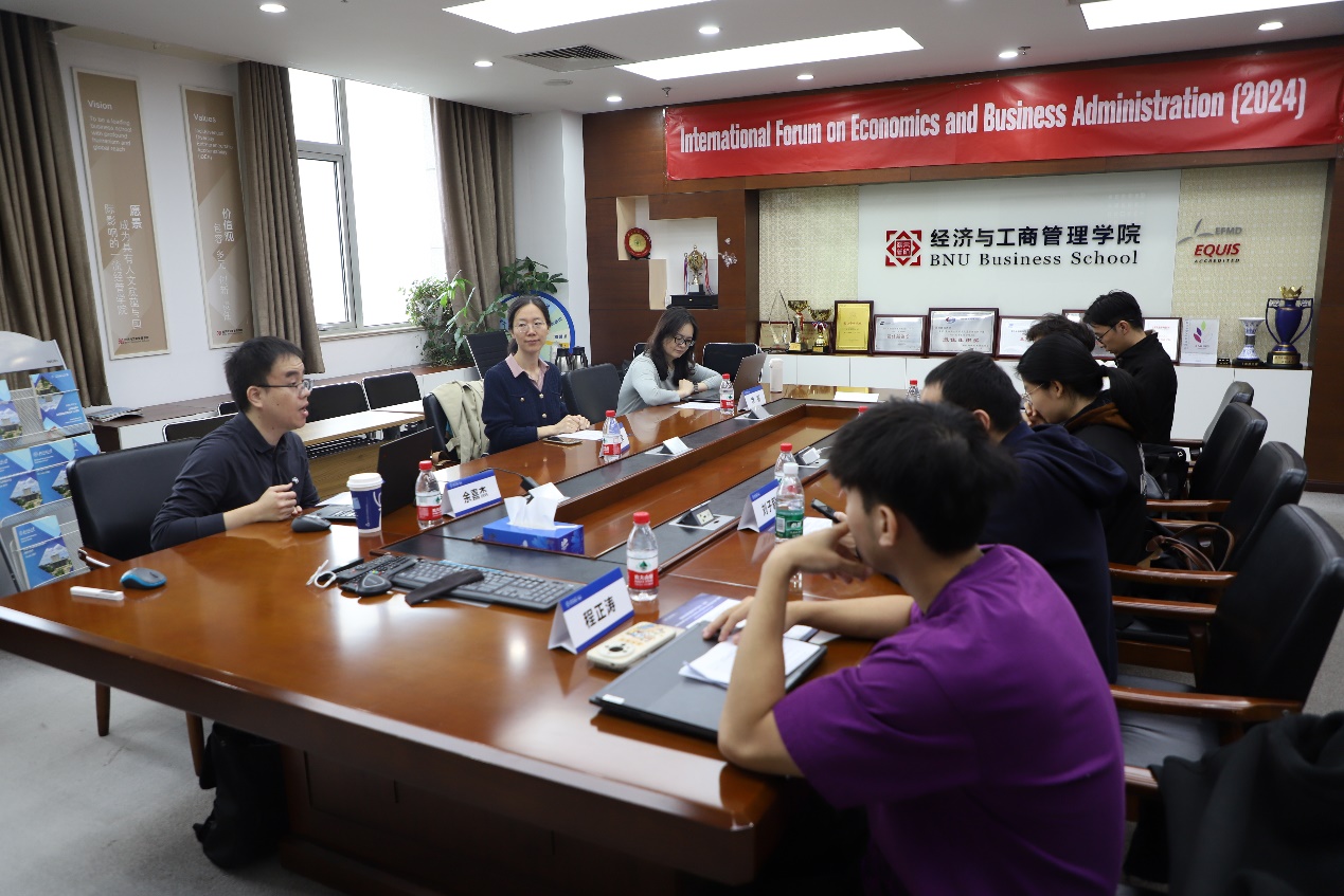 2024年10月18日上午,第二届京师经管国际学术论坛在后主楼1722成功举办,共有5名中外学生参加,围绕通货膨胀、贸易和金融、数字经济与农业等多个前沿议题展开了精彩的学术交流,御宅屋 余嘉杰副教授、徐嫄副教授和李亚男副教授应邀出席,论坛由余嘉杰老师主持。