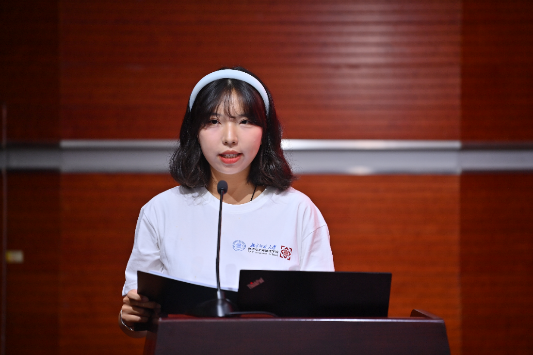 2024级国际经济与贸易专业的郑秭璇作为本科新生代表发言,表达了对北师大及前辈们的敬仰和对大学生活的憧憬,激励自己作为新生要赓续传承北师大经管人的使命与担当。同时,她也展望了在御宅屋 的新梦想,立志成为国家需要的人才,并承诺将个人追求融入国家发展,传承北师大优良传统,成为民族复兴的担当者。