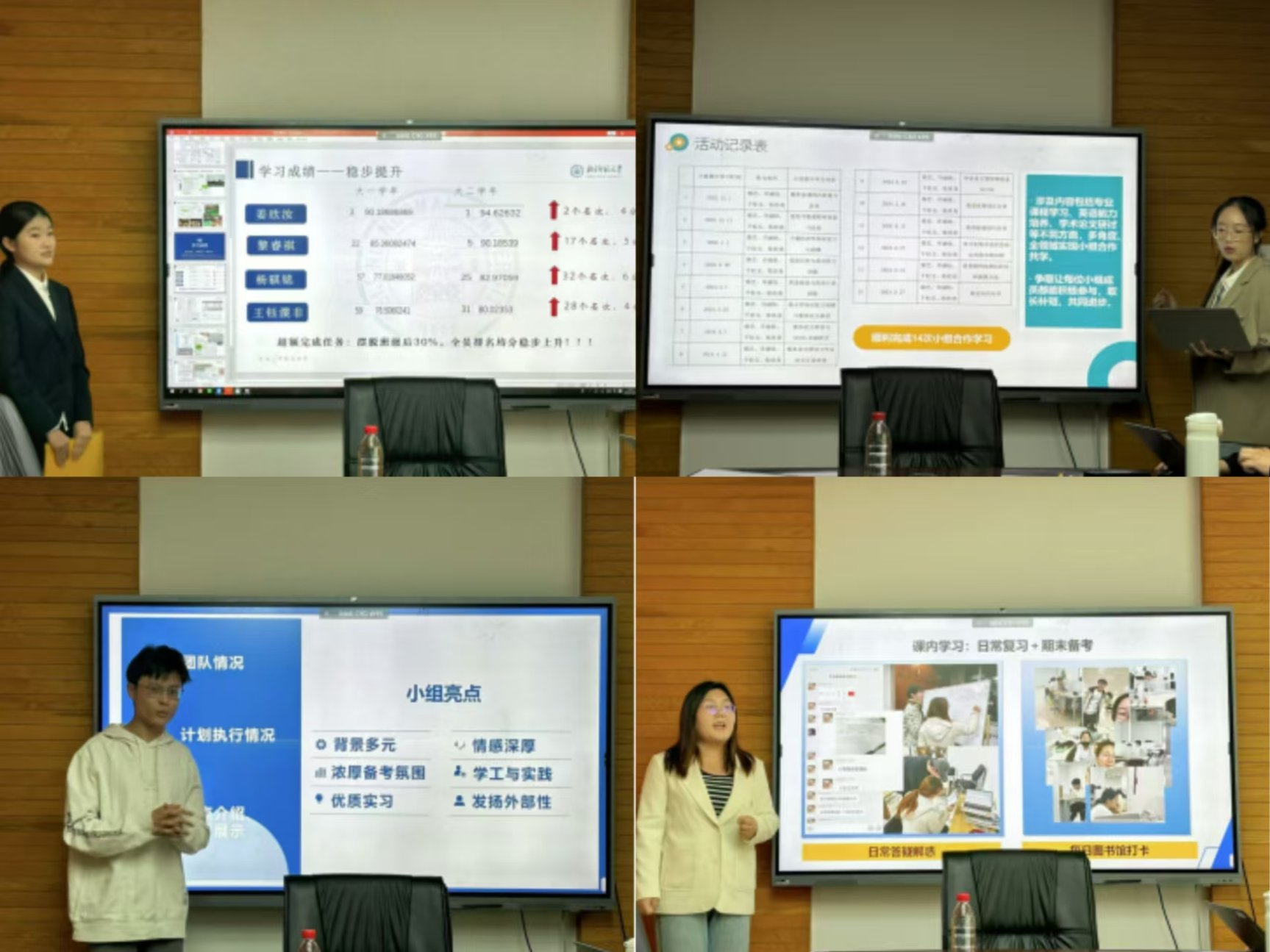 本届学习小组项目取得成绩显著。“学习小组”运行周期内,学习小组成员学习成绩进步显著,参与学习小组的本科生成员总成绩排名平均提升名次5名,其中“欣欣向荣”小组平均提升名次20名、“金融迫真学习组”平均提升名次13.5名。奖学金方面,获得国家励志奖学金共2人,获得京师一等奖学金共18人、获得京师二等奖学金、竞赛一等奖学金、竞赛二等奖学金、三好学生等若干人。除此之外,有3个小组获得美国数学建模大赛H奖,5人雅思成绩在6.5分以上,英语四级600分以上、六级500分以上数人,“艾利斯商学院”小组更是全员保研或出国,各小组另有保研前往北京大学、中国人民大学、香港中文大学、御宅屋 的同学若干名。