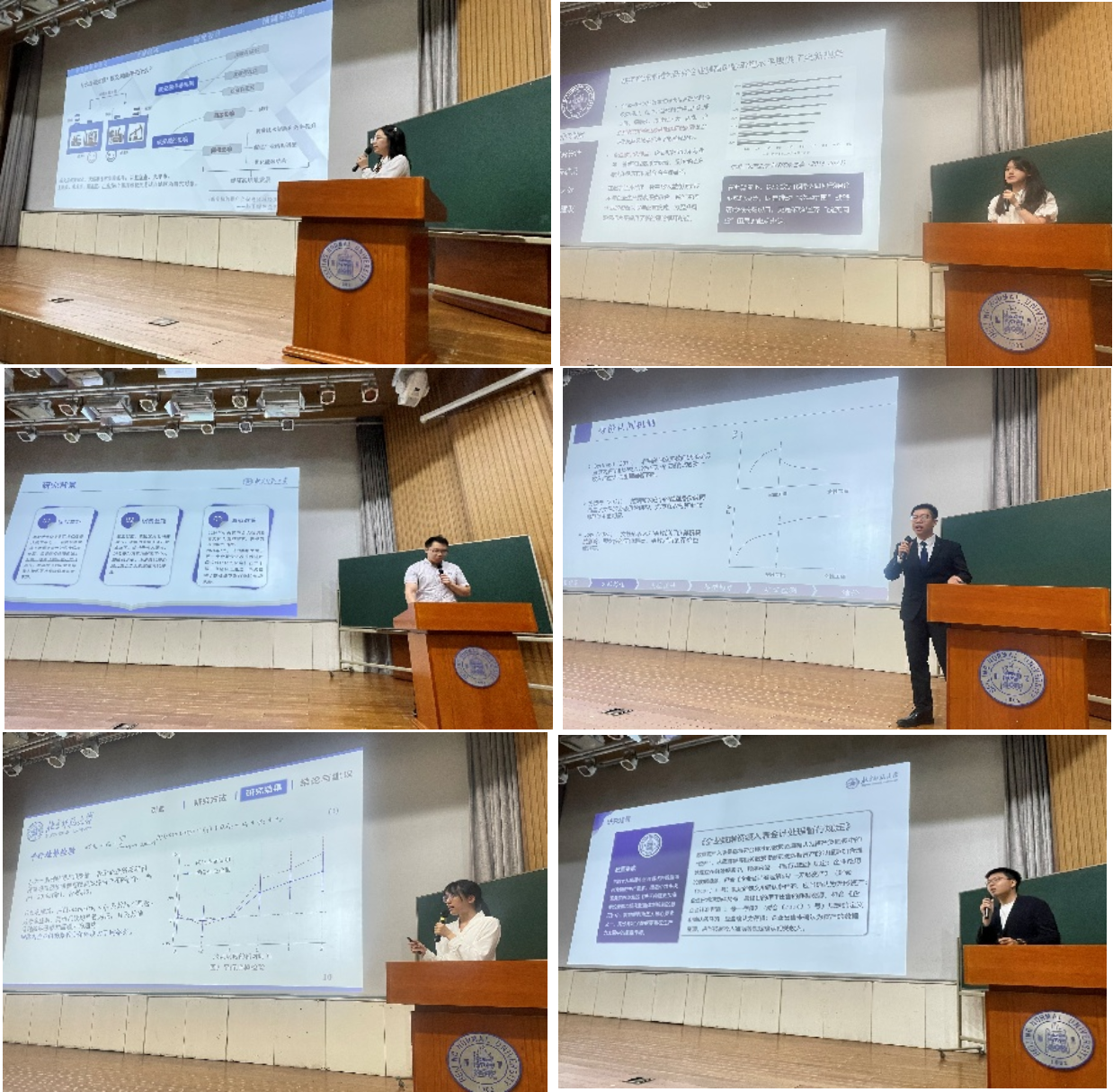 论文展示环节,吕丰晔、尉晨晨、肖汇杰、王卓然、潘秋怡、胡天一六位同学分别介绍了各组的入选论文,对研究背景、研究方法、结论和意义进行了系统阐述。张生玲教授、杨澄宇教授、林永生教授分别进行了点评。