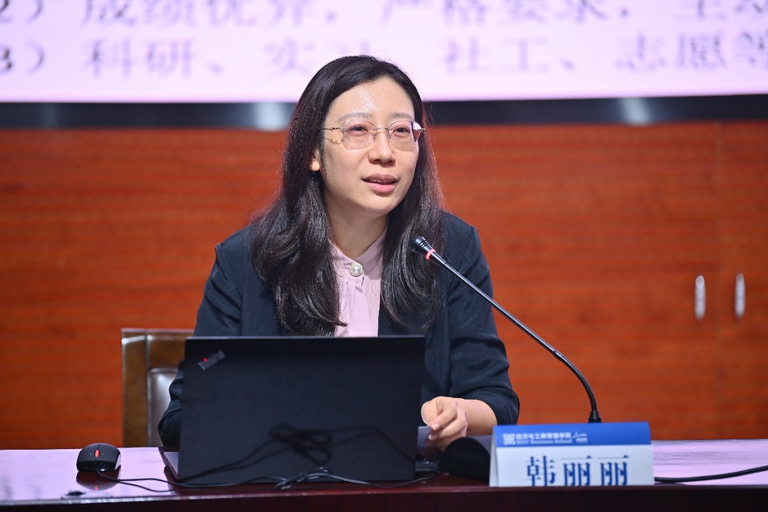 为帮助新生尽快适应大学生活,多渠道帮助新生了解新生活、融入新环境、适应新角色。学院党委副书记韩丽丽老师作了题为“我的大学如何度过”的入学适应教育,介绍了4位爱校荣校的学生榜样,进行了文明行为倡议与校规校纪警示教育、安全教育,并给同学们分享了四条经验与建议:一是,把握机会,进行充分的自我探索、积极的自我发展,早做规划;二是,尊重事实,遵守规则,辩证的看待社会问题、客观的处理人际关系,从正面分享人生追求和发展理念;三是,合理安排时间,科学管理大学生活,培养个性特长,争取全面发展;四是,找准自己的赛道与节奏,积极提升自身溢价、打造个人品牌,掌握应对未来社会变化的能力。学院学工团队将携手助力学生发展与服务,帮助同学们度过一段满意的大学时光。