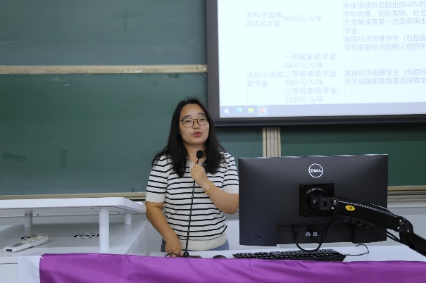 张惠琳老师介绍了学院学业辅导系列主题活动,并提醒同学们正确认识大学生活,纠正错误观念,鼓励同学们抓好学习主业,积极拓展视野做好我国经济学家、管理学家后备军。李论老师为同学们讲解了职业生涯规划的特点,并向同学们展示了快速获取就业信息的各种渠道和方法。高晶晶老师向同学们详细地介绍了学校及学院的各类资助政策,并对学校各类奖学金体系进行了介绍,同时她还向同学们介绍了大学生应征入伍的要求、各类优待和应征节点等相关政策。康昊然老师从五个方面介绍了班级建设如何开展,并鼓励各班要注重开展班级文化、班风建设,提高班级凝聚力,并向同学们简要介绍了户籍档案工作的相关事宜。范瑞聪老师向同学们介绍了学校心理咨询服务体系,鼓励各位同学务必重视自身的心理健康,如果遇到困难务必要及时求助。
