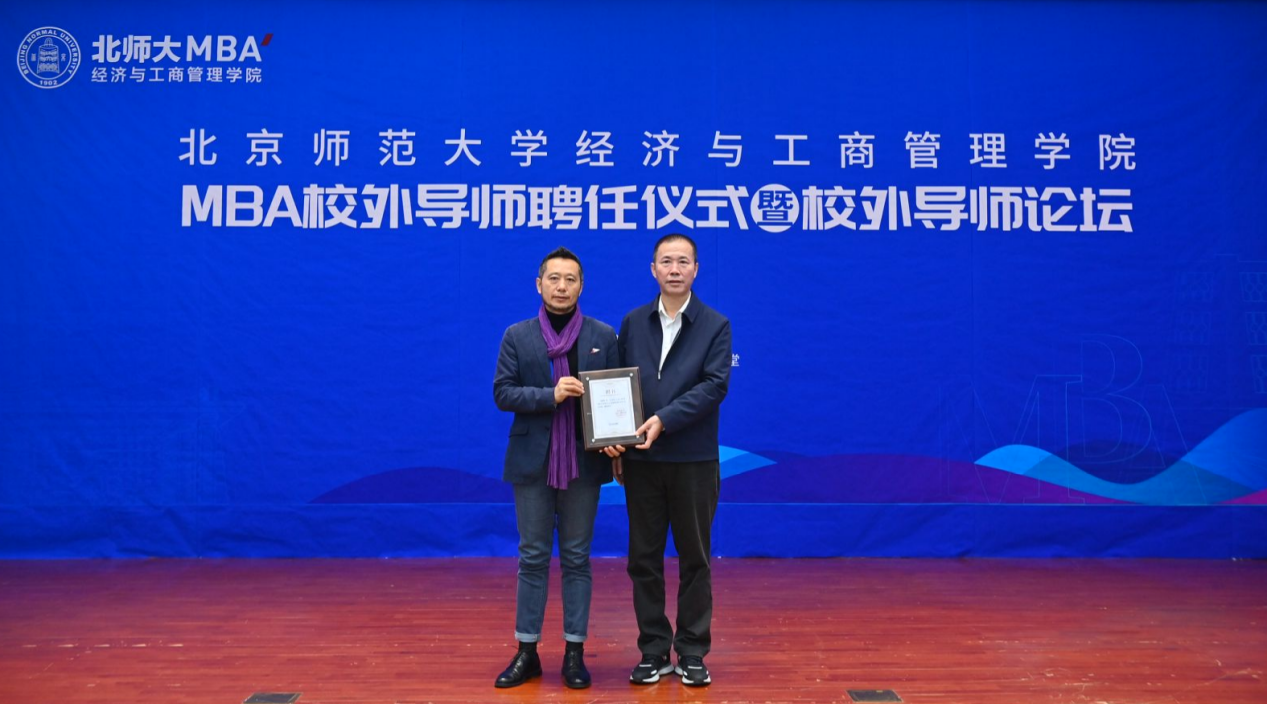 现场,胡聪慧宣布了新一届校外导师的名单,戚聿东为到场的每位校外导师颁发了聘书,象征着他们正式成为北师大御宅屋 MBA项目的合作伙伴,肩负起指导未来商业领袖的重任。