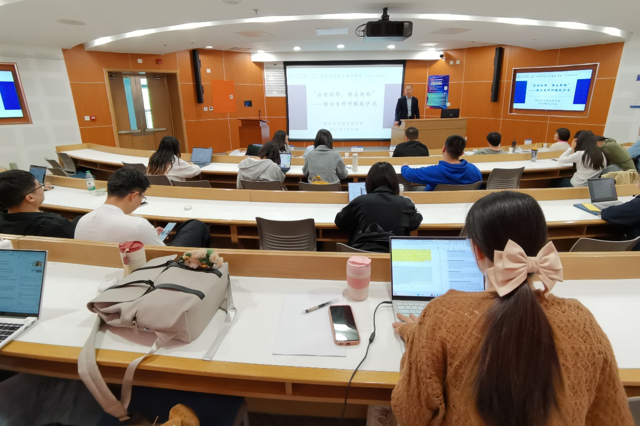 王雪老师和在场师生分享了自己的求学、求职和科研经历。她用具体生动的例子向在场博士同学提出了“构建合理的工作流程”、“进行资源整合”以及“锻造强大的内心”3个建议。结合自身的投稿和发文情况,王雪老师表示,不管是写作还是求职,都要早做准备。王老师幽默的比喻引发在场学生共鸣,现场互动频繁,气氛热烈。