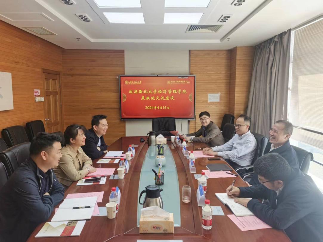 2024年4月16日上午,西北大学经济管理学院院长马莉莉、副院长张华岭、副教授、科研助理赵仁杰等一行3人来御宅屋 开展调研交流工作。学院院长戚聿东、党委书记孙志军、副院长张平淡、经济系系主任许敏波、办公室主任王玮等参加了调研座谈会。