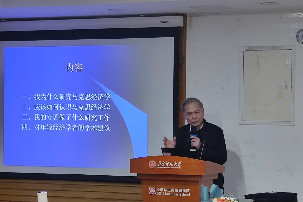 接下来,李翀教授演讲围绕“为什么研究马克思经济学”、“如何认识马克思经济学”、“专著做了什么研究工作”以及“对年轻经济学者的学术建议”展开。李翀教授从求学经历、导师影响和个人兴趣三个方面介绍了自己为什么研究马克思经济学。关于如何认识马克思经济学,李翀教授从马克思经济学和西方经济学两大理论体系的异同、两大理论体系研究方法的异同、马克思经济学是政治学说吗?马克思经济学过时了吗?马克思经济学脱离现实吗?五个问题进行了阐述。李翀教授从专著撰写目的、逻辑论证、统计检验、补充性意见、对三大难题提出解决方法等方面介绍了专著的研究工作。最后,李翀教授对年轻经济学者提出了学术建议,希望他们能加强经济思想史的训练,多读经济学名著原著,从中汲取有益思想。