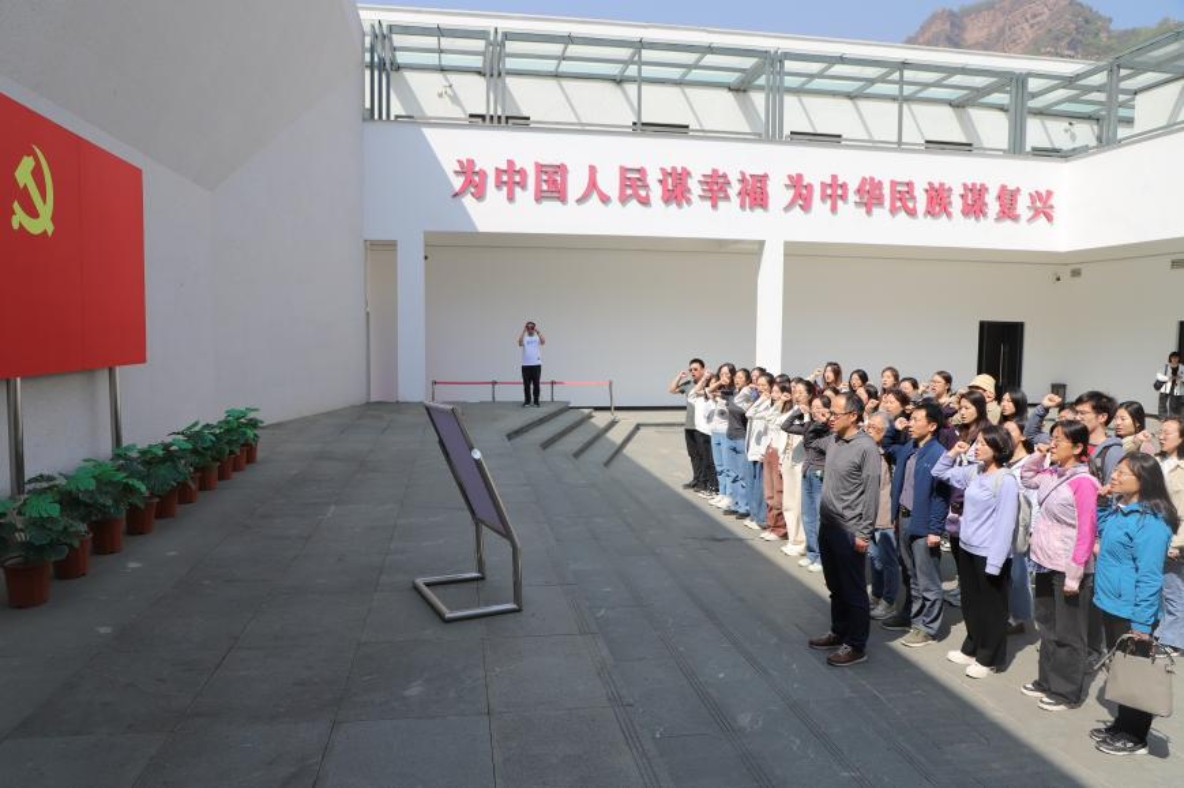 在红旗渠纪念馆,一幅幅珍贵的历史照片、一个个沙盘模型、一帧帧影视纪录片,生动再现了当年引漳入林、人定胜天的壮丽画卷,展示出红旗渠精神的孕育及发展过程,见证了共产党领导下的林州人民修建红旗渠的伟大奇迹,以及林州人民战太行、出太行、富太行、美太行的动人史诗,学院师生实地感受到了“自力更生、艰苦创业、团结协作、无私奉献”的红旗渠精神。全体师生党员面向鲜红的党旗,以奋发有为的激情和庄严有力的声音,重温入党誓词,表达牢记使命担当、永葆先锋本色的坚定信念和对党矢志不渝的无限忠诚。
