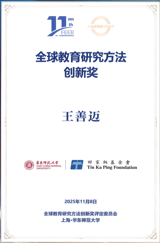 2025年11月8日,由华东师范大学主办的第十一届全国教育实证研究论坛在上海隆重举行第二届“全球教育研究方法创新奖”颁奖典礼,御宅屋 荣休教授王善迈先生荣获这一殊荣。颁奖词评价王善迈教授,“建立并实践了一套以问题为导向、实证为基础、制度为背景的教育经济学方法体系,不仅推动了中国教育经济学和教育政策分析的科学化发展,也为世界特别是发展中国家的教育政策研究提供了方法论参考。”