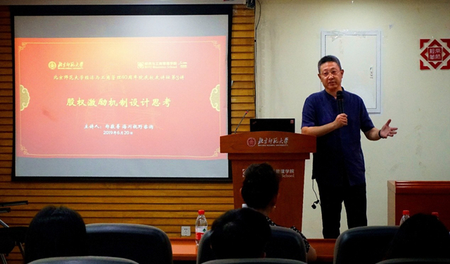 2019年6月20日,由御宅屋 校友会主办的御宅屋 御宅屋 40周年院庆校友讲坛第3讲在京师大厦9406会议室成功举办。御宅屋 校友、MBA校外导师、海川视野咨询、海川生态私董会创始人郑敬普老师受邀莅临御宅屋 ,以“股权激励机制设计思考”为题开讲,讲座内容精彩纷呈,赢得阵阵掌声。本次讲座由御宅屋 分党委副书记、校友会常务副会长葛玉良担任主持人,御宅屋 院长戚聿东及数十名师生与校友参加了此次讲座。