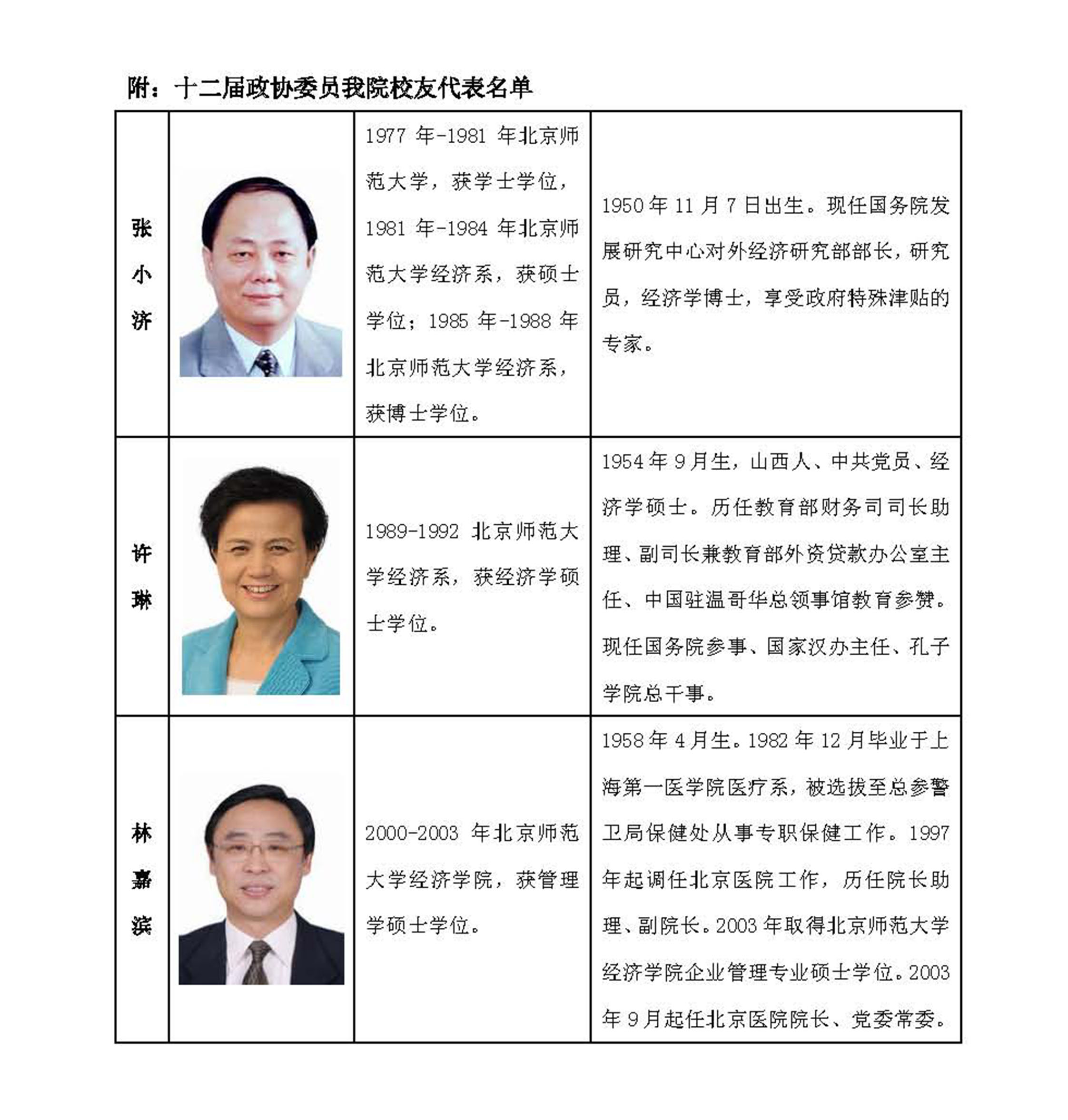 校友张小济、许琳、林嘉滨当选第十二届全国政协委员,为促进国家经济发展、提升人民幸福指数积极建言献策。
