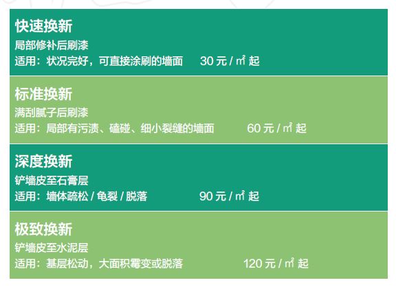 住范儿墙面刷漆产品菜单