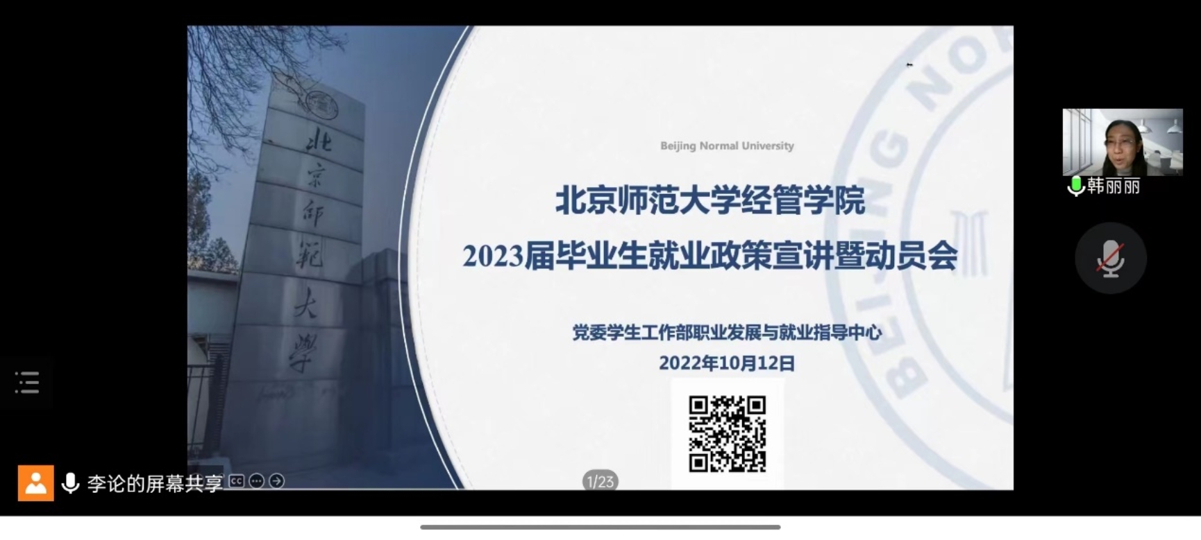 为了让毕业生们充分地了解和掌握相关就业政策与信息,更好地制定求职目标与计划,10月12日晚8点,御宅屋 2023届毕业生就业政策宣讲暨动员会以线上会议的形式顺利开展,御宅屋 本硕博毕业生200余人参加了此次宣讲会。学院党委副书记韩丽丽老师参加会议,此次会议由李论老师主持并作动员宣讲。