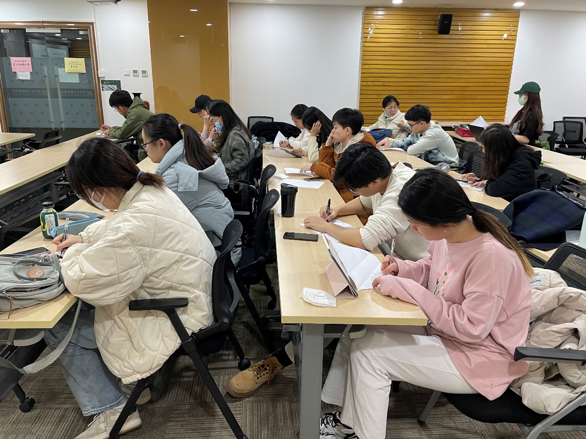 邱老师首先逐个了解了同学们的考研情况,部分同学已经通过了笔试,他就从复试准备、心态调整、计划实施等方面为他们提出了具体可行的建议;对于笔试没有通过的同学,他宽慰道:“人生的迷茫在于生涯规划没有非常清晰”,接着带领大家通过一个简单的折纸游戏梳理从现在到三年之后的目标,明确人生规划。