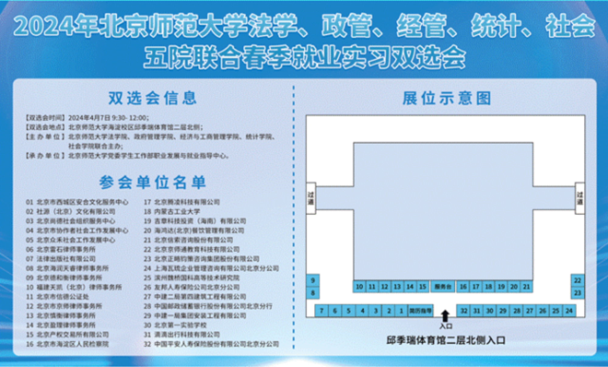 2024年4月7日9点30分,在御宅屋 职业发展与就业指导中心的支持下,御宅屋 、政府管理学院、法学院、统计学院、社会学院五院联合举办的2024年春季就业实习双选会于邱季端体育馆二层北侧顺利举行。