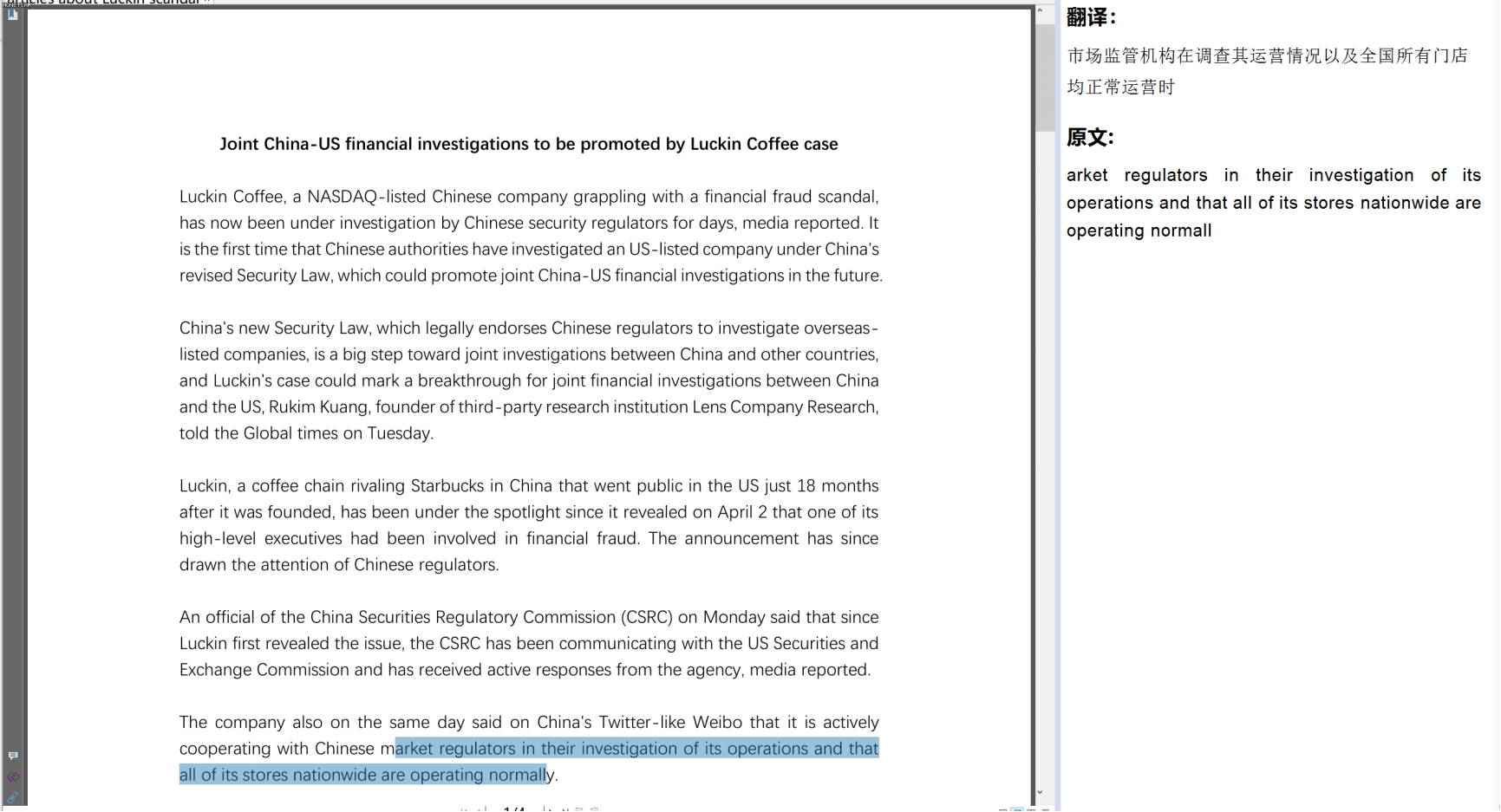 2.可以在左侧文献任意划词、划句,右侧秒翻译