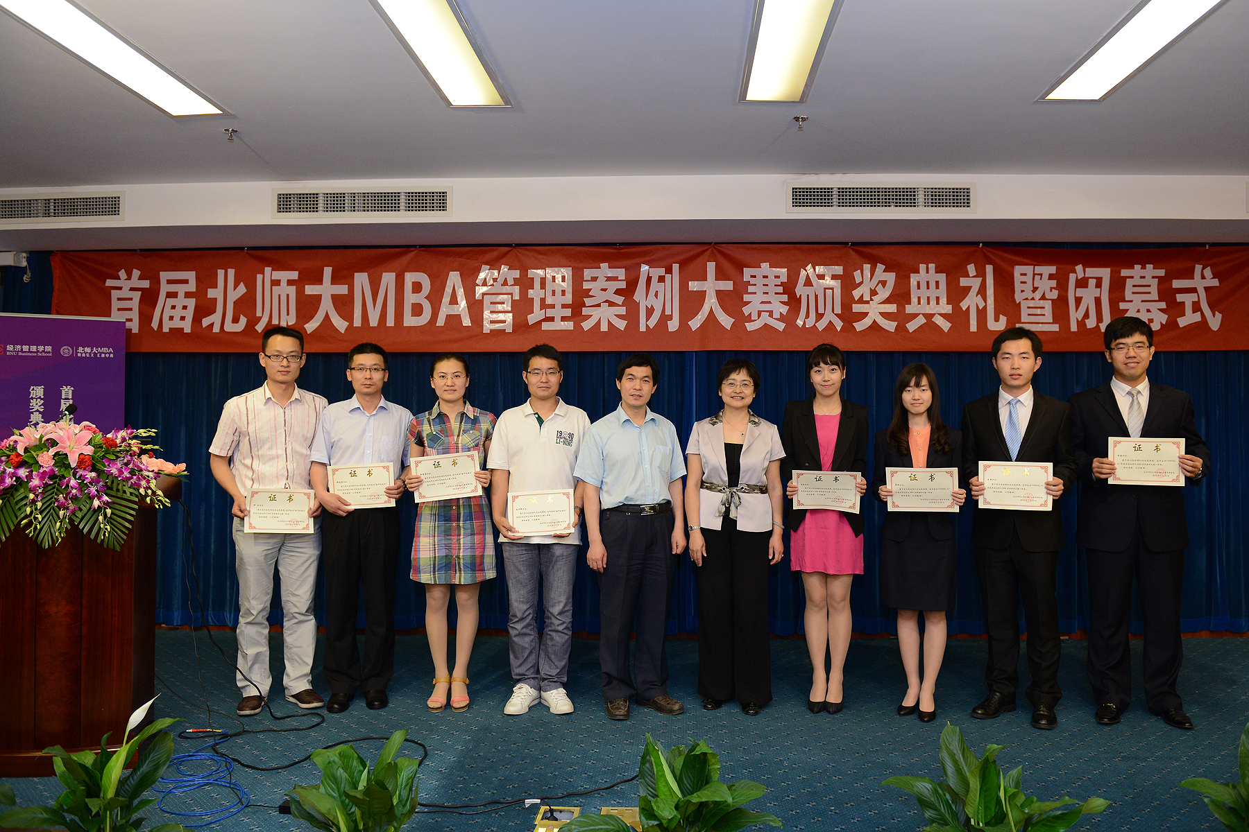MBA管理案例大赛颁奖典礼暨闭幕式于2013年5月23日晚在京师大厦三层第六会议室落下帷幕。本次案例大赛自3月份启动,共有27支代表队报名参赛,历时3个月,经过两轮比赛,十位评委现场打分,北师大MIB代表队—— HWMG队在此次案例大赛中异军突起,荣获一等奖。