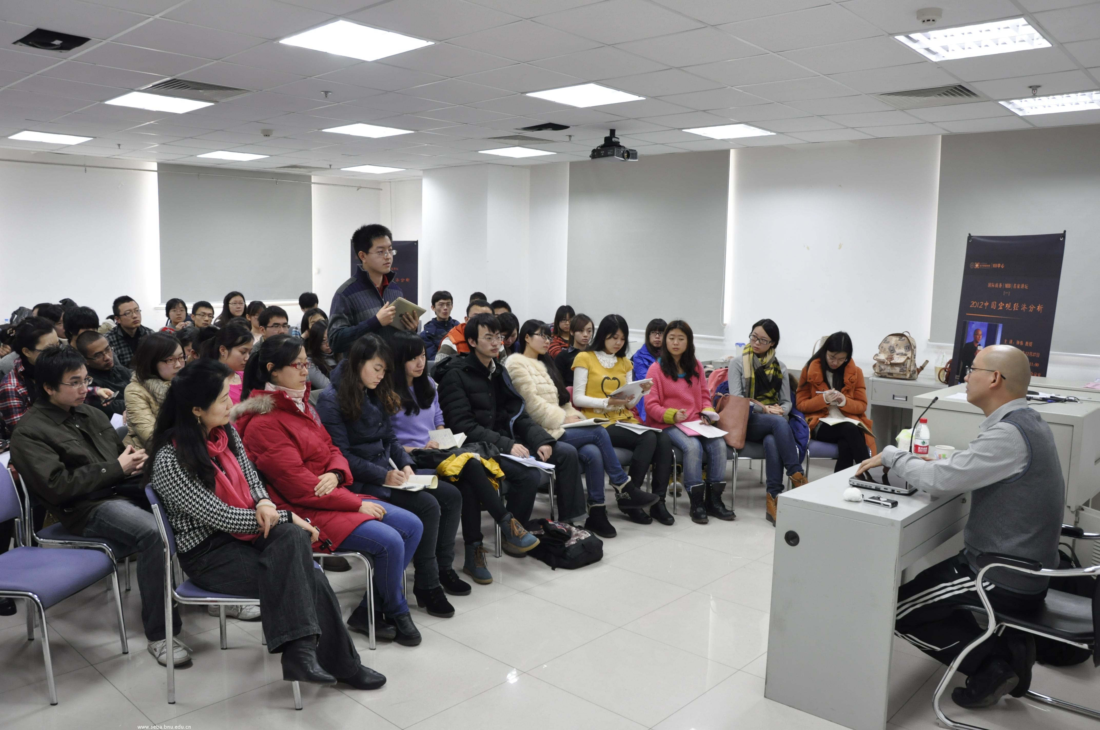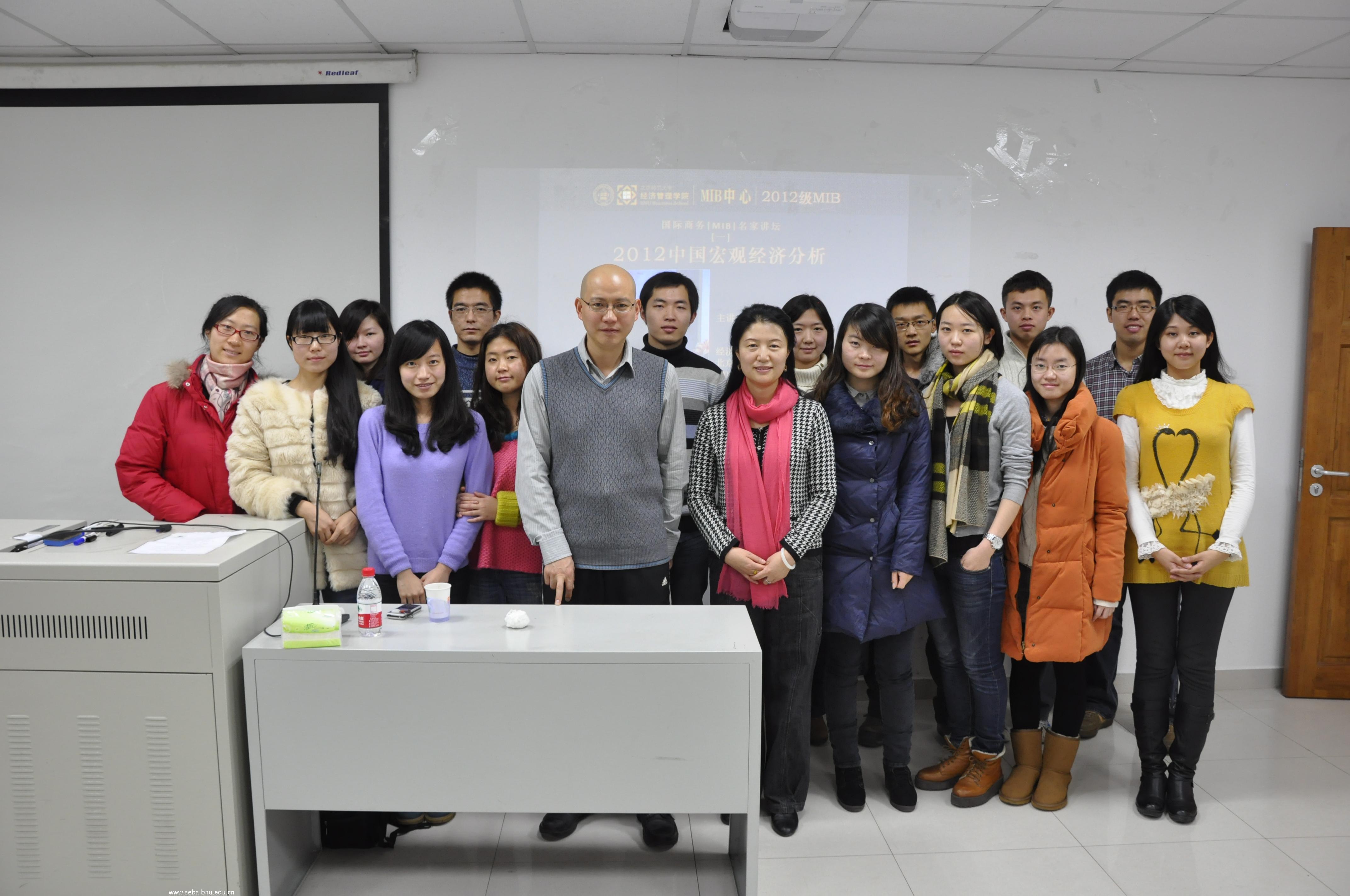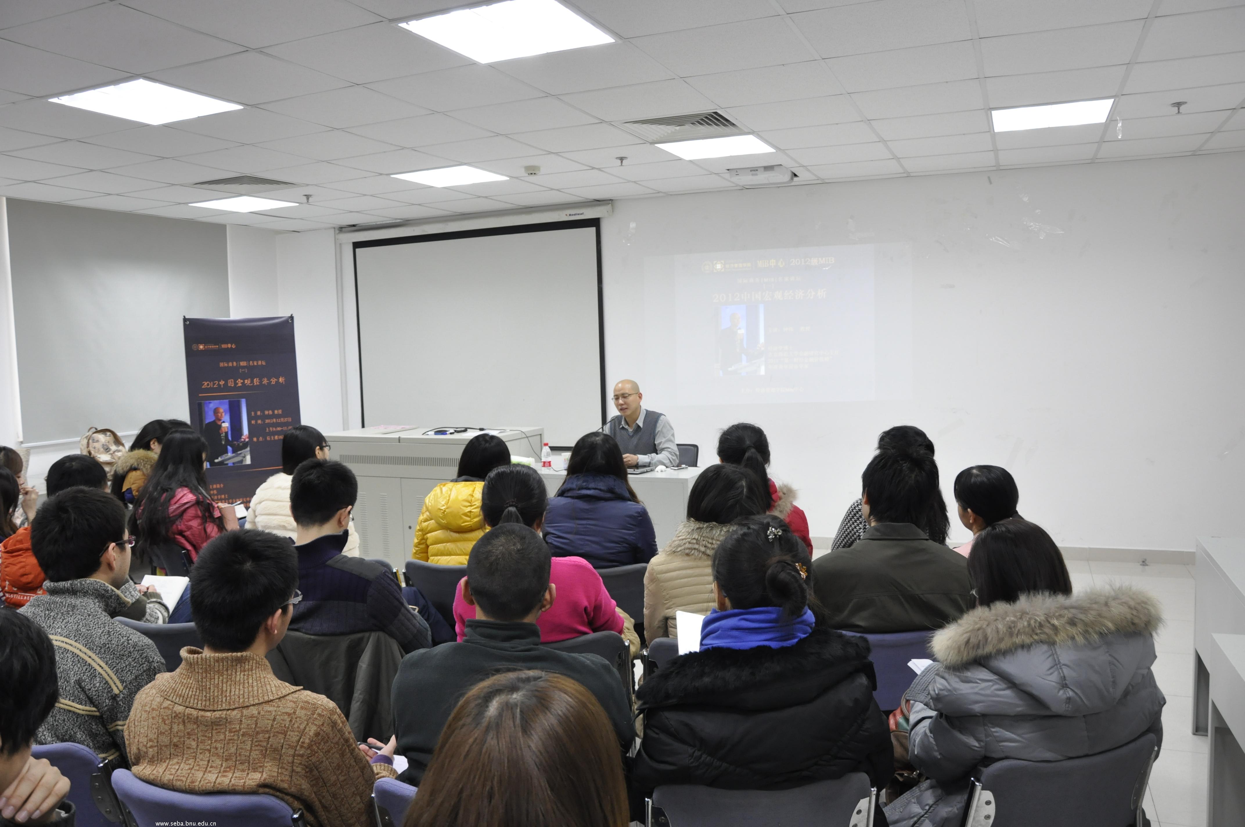 2012年12月27日,在后主楼1620,经济管理学院MIB中心邀请钟伟教授率先拉开了北师大MIB名家讲坛的帷幕,举办了主题为“宏观经济分析”的讲座。讲座由北师大MIB教育中心主任仲鑫教授主持。