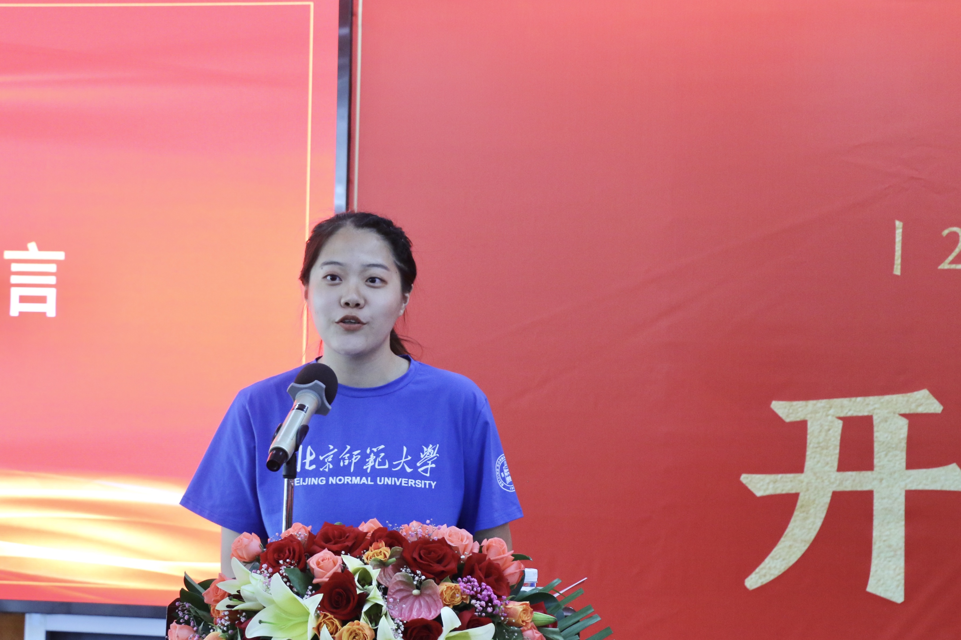 2020级国际商务硕士杨晓阳同学作为新生代表发言。她表示做为师大学子,要乐于奉献心系天下,矢志奋勇拼搏,作为国际商务专业的学生,还要拥有国际视野的敏锐洞察力,在北师大这个追梦的平台上勇敢探索,找到那个有梦、追梦、独一无二的自己。